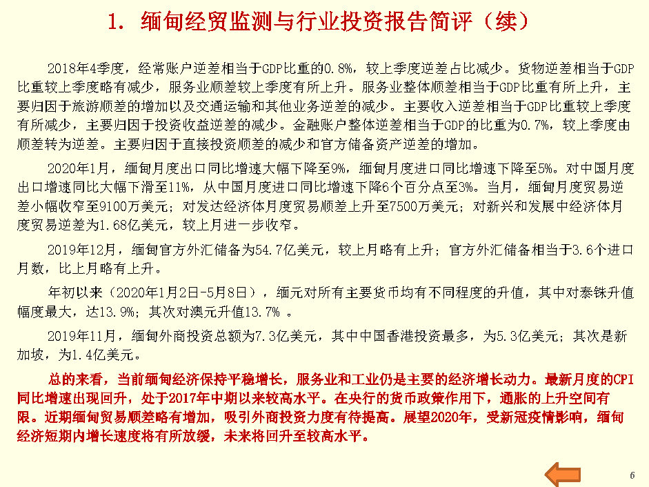 缅甸经贸监测与行业投资报告(2020年4月第5周)