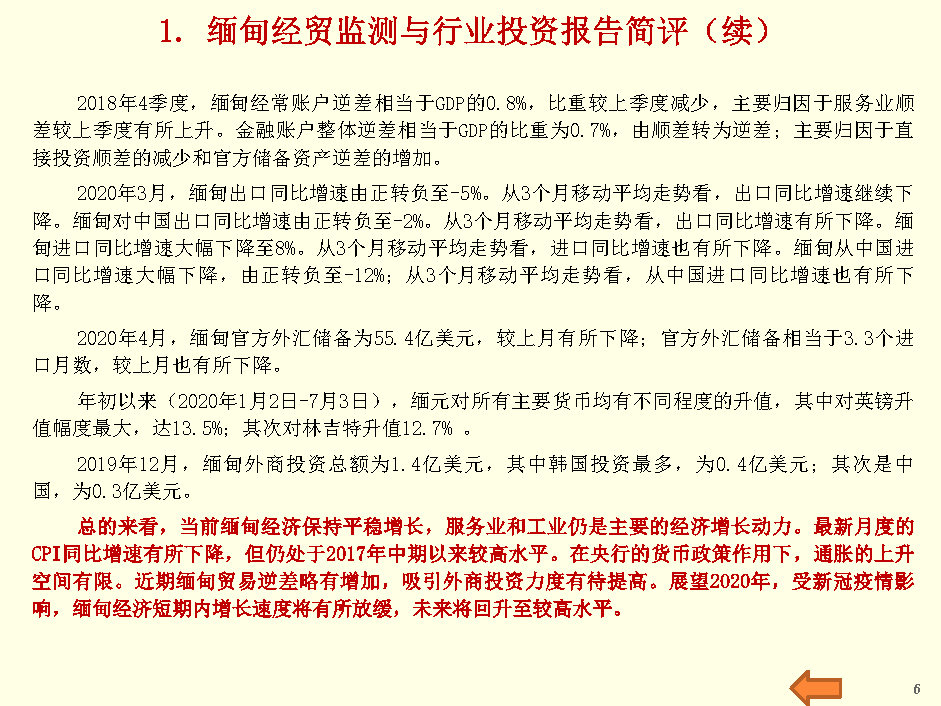 缅甸经贸监测与行业投资报告(2020年7月第1周)