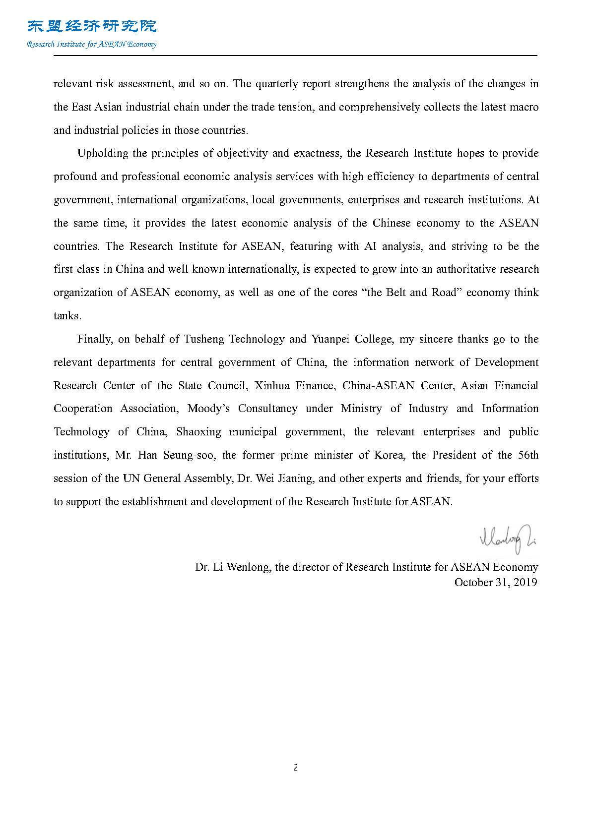 中国-东盟经贸监测及行业投资季度报告(2019 年第 4 季度)