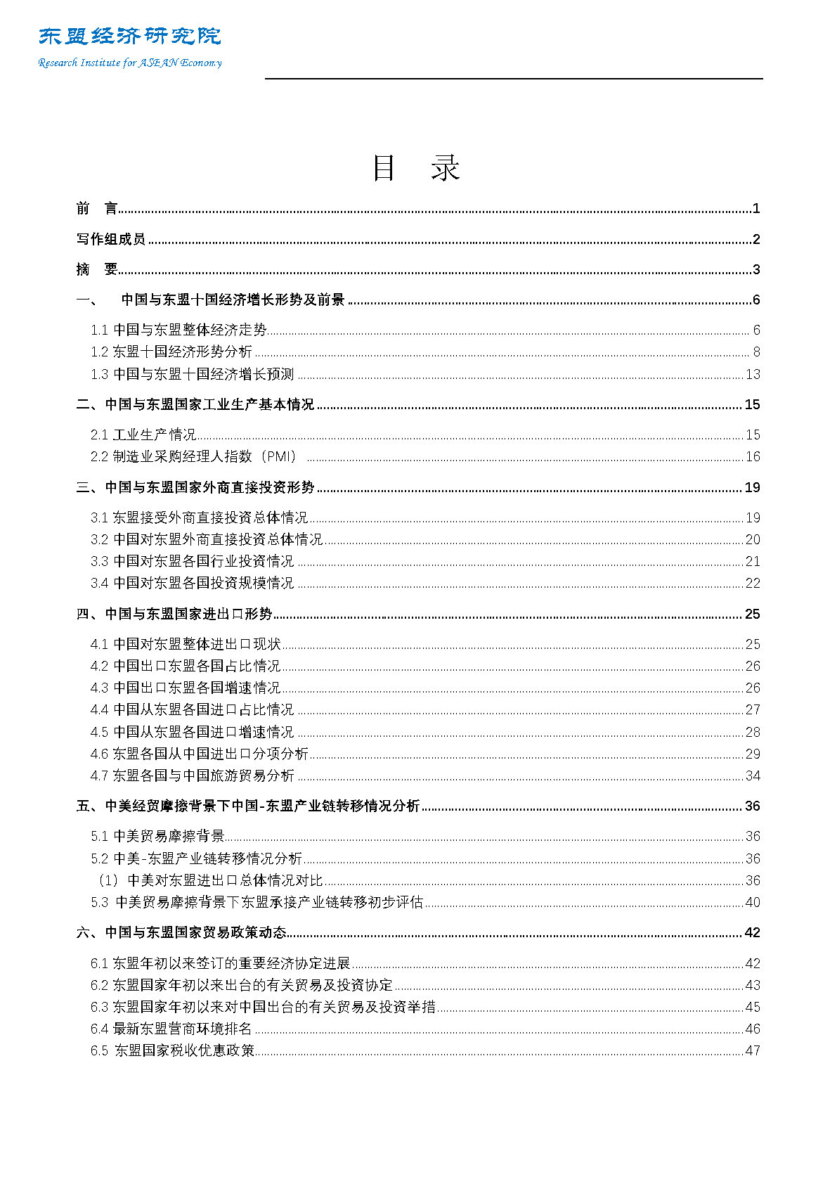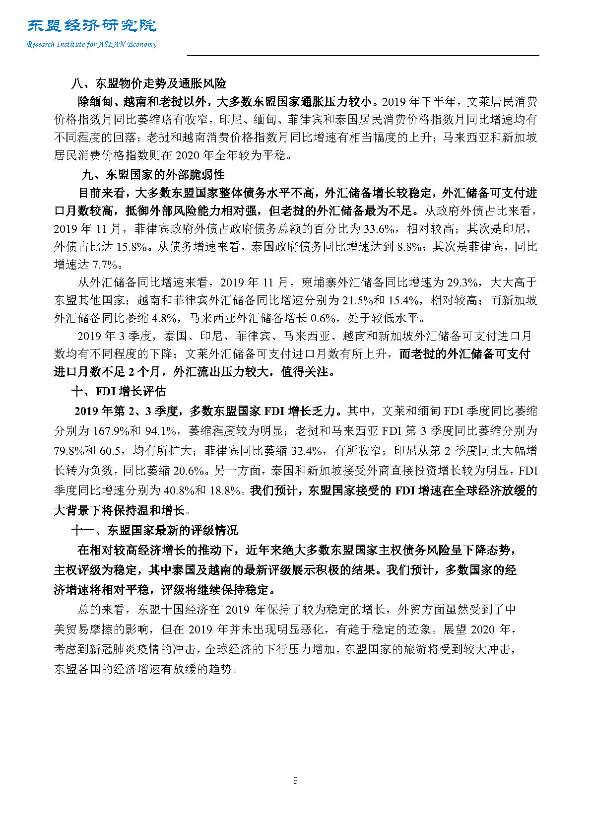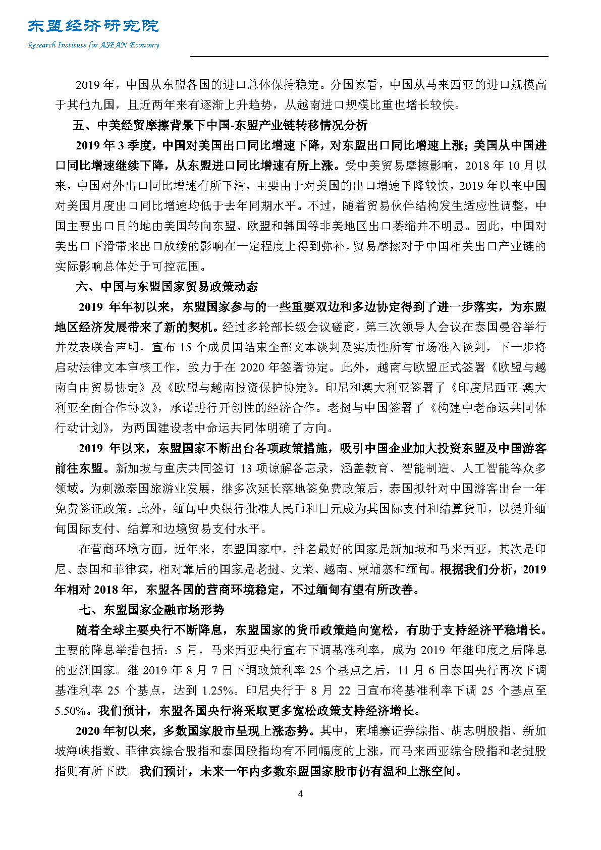 中国-东盟经贸监测及行业投资季度报告(2019 年第 4 季度)