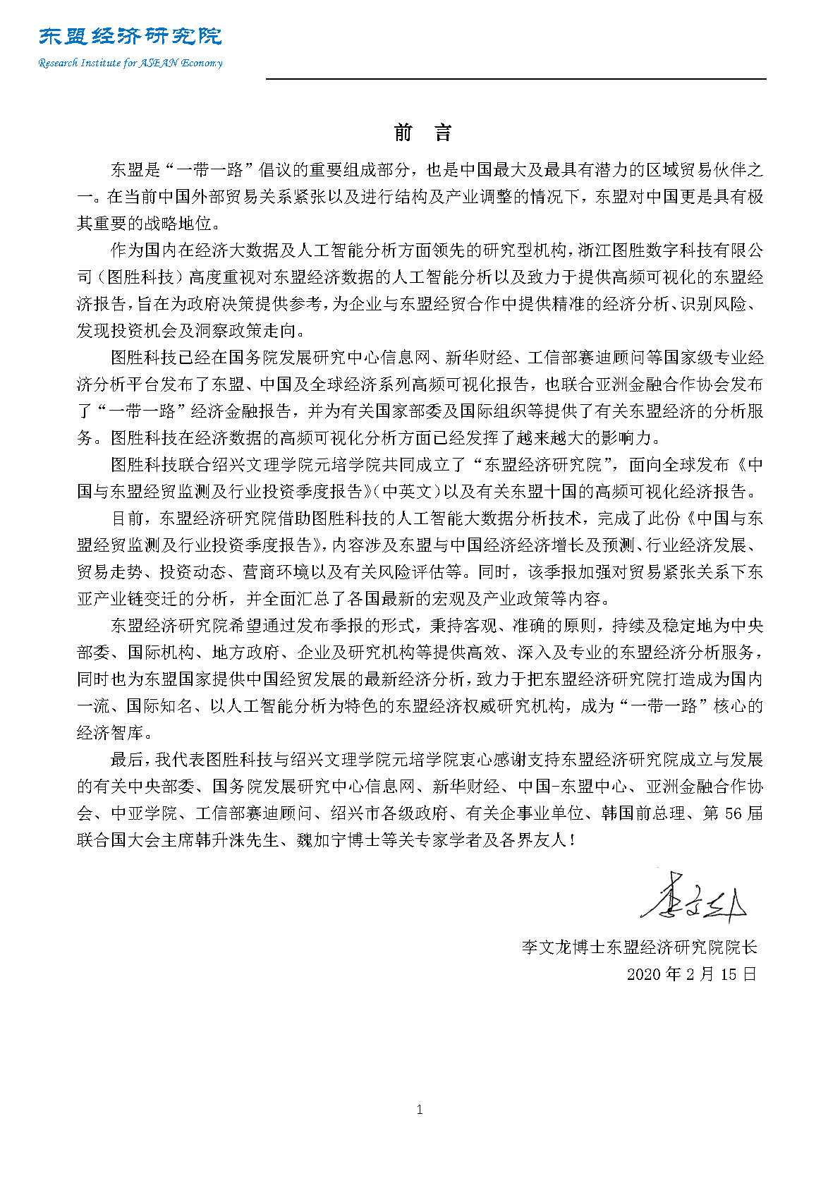 中国-东盟经贸监测及行业投资季度报告(2020 年第 1 季度)